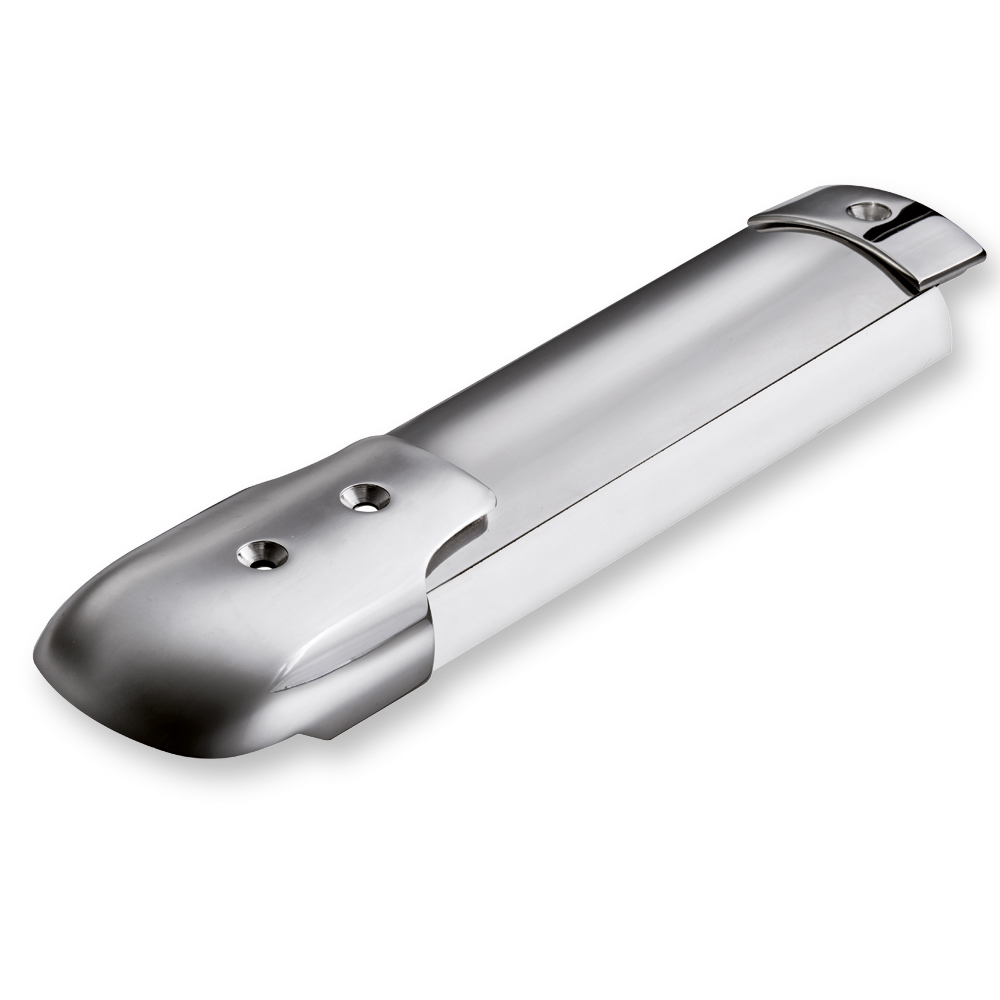 I nostri terminali sono studiati appositamente sulle forme della base e del profilo nel loro accoppiamento e garantiscono un risultato estetico impareggiabile, grazie alla linguetta che va naturalmente ad accoppiarsi col profilo lasciando però intravedere la cornice in PVC. Lucidati a specchio esaltano la qualità del profilo Douglas Marine.